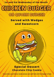 A reminder that our catering team hold Burger Days every 1st & 3rd Wednesday of the month.