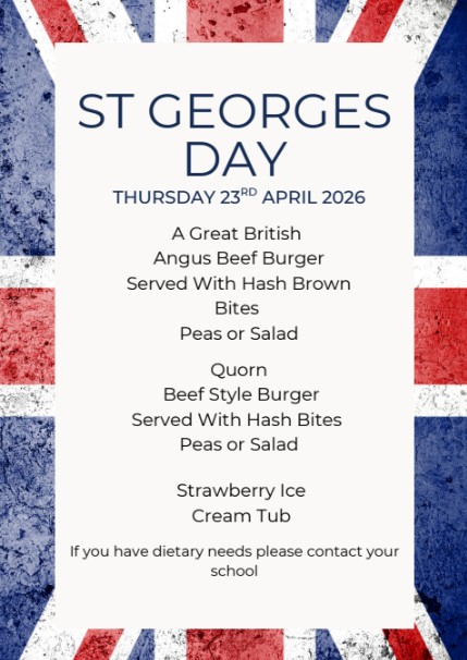 Our catering team will be serving up a special St Georges Day Menu on Thursday, 23rd April.